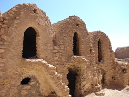 Le ksar, au pluriel ksour a été l’élément central de la vie dans le sud tunisien jusqu’à l’époque moderne. Cette architecture sans architecte de la région de Tataouine montre la créativité adaptée aux besoins de l’époque. Les ksour représentaient les noyaux autour desquels les villages finirent par prendre corps. Ces bâtiments furent une institution agricole, sociale et militaire. Certains disent que les ksour furent des greniers, théorie qui ne peut pas etre prouvée. Peut être que l’explication pouvait être valable s’il y a 2500 ans Hérodote n’aurait pas parlé sur cela et sur la civilisation des Garamantes. C'est toujours Hérodote qui explique ce que signifient les Garamantes: les gens des villes ou les gens qui habitent dans les villes. Donc d’après ses mots et d’après ce qu’on peut admirer aujourd’hui il s’agit bien des villes dans le sens le plus moderne du mot. Sans doute les berbères ont utilisé ces constructions comme refuge des grottes de la montagne qu’ils aménagèrent en habitat provisoire.