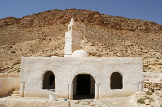 A 16 km ouest de Tataouine, un amphithéâtre géant sculpté des siècles des érosions. Un jeu d’ombres et de lumières, Chenini reste discret.