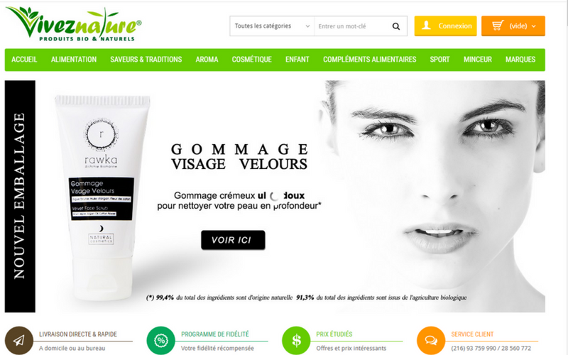 VivezNature.com est spécialisé dans la vente en ligne des produits naturels et Bios avec une multitude de références. Les produits Bios présents sur le site sont issus de l’agriculture biologique en Tunisie.