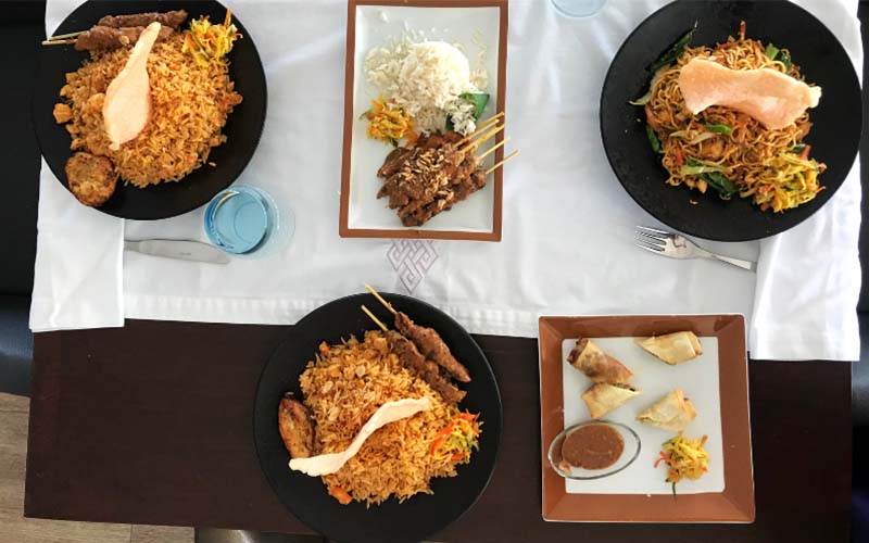 Ils vous surprendront dès l’entrée avec des « Empek Empek » à base de poissons frits et sauce de soja, des « Martabak » ces délicieux pancakes frits et farcis à l’émincée de bœuf ou encore des « Lumpia Isi » …