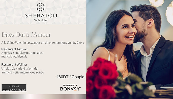 Pour plus de détails, n’hésitez pas à suivre l’événement Facebook « Célébrez l'amour au Sheraton Tunis »
