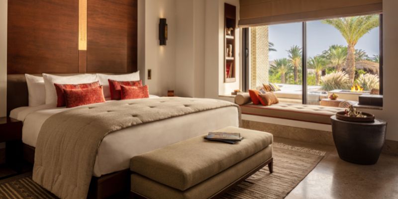 L’hôtel est doté de 50 suites spacieuses de 79m² avec vue sur le désert et de 43 villas dont la plus grande fait 864m².