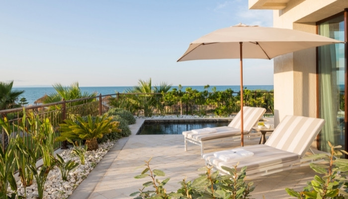 Nommée ainsi en raison de la vue imprenable qu'elle offre sur la mer, cette suite située au premier étage dispose d'une terrasse avec piscine privée.