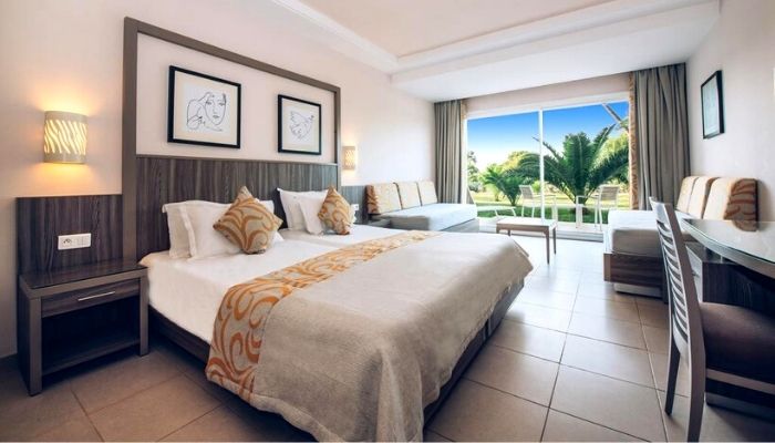 - des chambres avec une vue sur la piscine, le jardin ou la mer