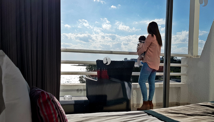 La chambre est vraiment sympa, la déco chic et cosy lui donne un air de gaieté. Notre coup de cœur été pour ce petit balcon avec une vue splendide sur la grande bleue et la piscine de l’hôtel. C’est l’endroit rêvé pour admirer le coucher du soleil.