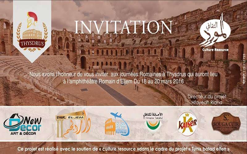 Il s’agit des « Journées Romaines de Thysdrus », une manifestation qui fera revivre El Jem au rythme historique de l’ambiance de jadis. C’est une occasion exceptionnelle pour toute personne, grands ou petits de découvrir l’univers d’une époque connue seulement des livres d’histoire. Du 18 au 20 mars l’histoire sort des livres et débarque à Thysdrus.