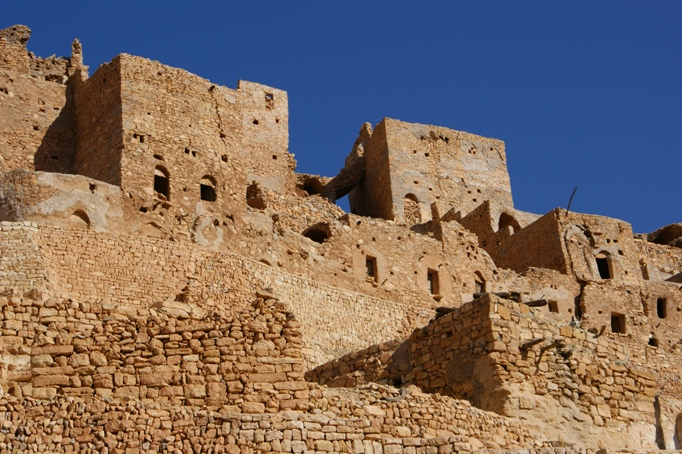 Le Ksar est un des plus imposants. Quelques parties sont des ruines, évidement les éléments les plus anciens. Les fouilles ont découvert une date inscrite en relief sur une cellule ; les chiffres sont clairs : 590 après Hégire (1193). Le ksar est donc très ancien et au moins une partie a été construite à un siècle après l’invasion hilalienne (1100).