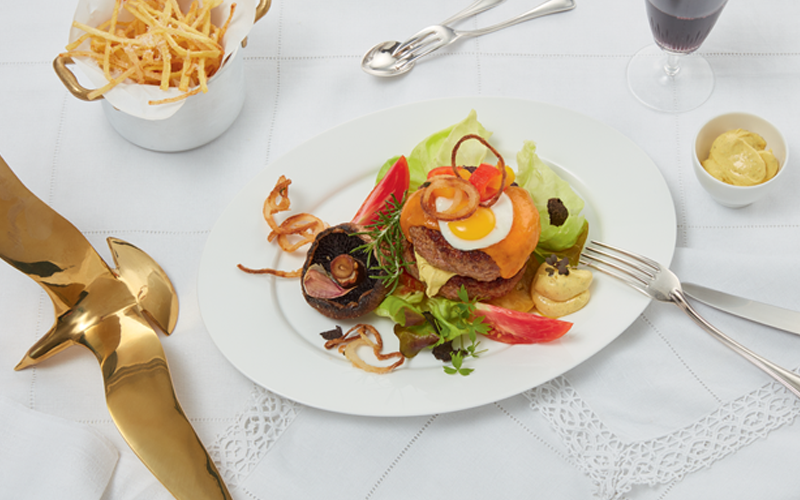 6- Le hamburger Café de Paris: une pièce de bœuf de première qualité, alliée à des frites croustillantes saupoudrées de parmesan