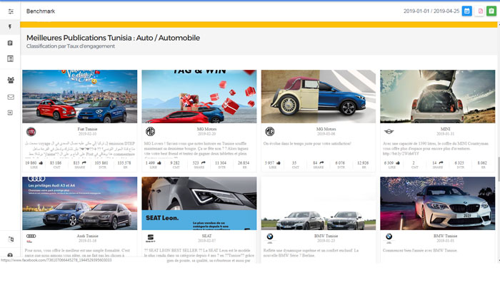 Facebook reste le réseau social préféré des marques d’automobiles en Tunisie et le classement varie très souvent! Pour jeter un coup d'œil sur le rapport détaillé de toutes les marques Auto en Tunisie il vous suffit de tester la version démo de http://kpeiz.digital/ l'outil référence d'analyse et de Benchmarking sur Facebook.