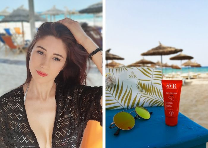 Comme j'ai quelques taches pigmentaires ainsi que des anciennes cicatrices d'acné, le SVR Sun Secure Blur me permet d'être protégée tout en ayant un effet embellisseur qui m'évite l’application d’un fond de teint.