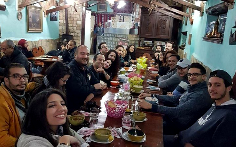 La nuit, on a dîné au restaurant « Le petit bateau » où on a été accueilli chaleureusement par les proprios : le dîner se composait des barquettes, des salades, des pattes et « l’AKNEF », une spécialité typiquement kéfoise à base de viande de mouton cuit à la vapeur avec du romarin, un vrai délice. On a terminé le dîner avec du bon thé vert et "Rfisset Rouz", un dessert vraiment succulent ! C’était à base de riz, miel, beurre, fruits secs, dattes et raisins secs.