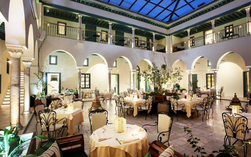 C’est en plein cœur des souks de Tunis, à deux pas de la grande mosquée Zitouna que se trouve l’un des plus grands restaurant de la ville. Ce lieu impressionne par sa grandeur et son style architectural arabe avec son patio entouré d’arcades et de jasmin tout au long du balcon.