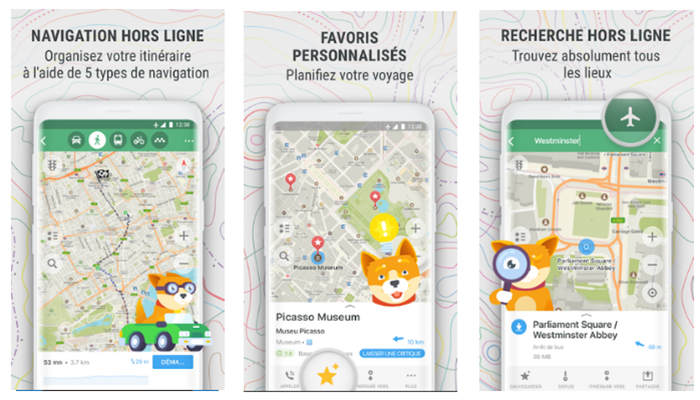 Maps.me est une application de cartographie qui permet de télécharger la carte du monde entier pour une utilisation hors ligne sans internet.