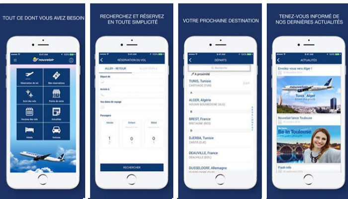 Nouvelair propose une application mobile qui vous permet à la fois d’acheter votre billet, intégrer votre voyage dans votre agenda, consulter les horaires des vols pour connaitre l’heure exacte de l'arrivée, gérer votre réservation, réserver dans un hôtel ou louer une voiture… Bref, une vraie app de voyage avec plusieurs fonctionnalités.