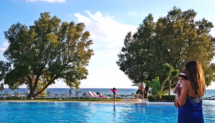 La chambre est vraiment sympa, la déco chic et cosy lui donne un air de gaieté. Notre coup de cœur été pour ce petit balcon avec une vue splendide sur la grande bleue et la piscine de l’hôtel. C’est l’endroit rêvé pour admirer le coucher du soleil.