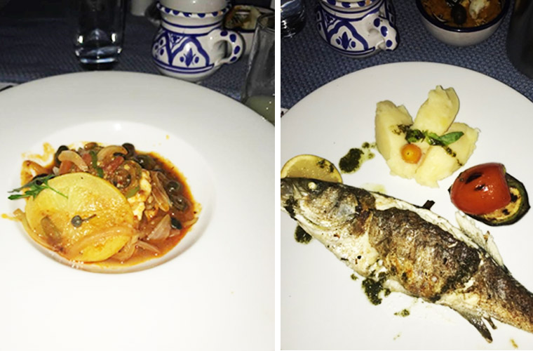En plat principal : « Markket Eméllah » et « Loup de mer »